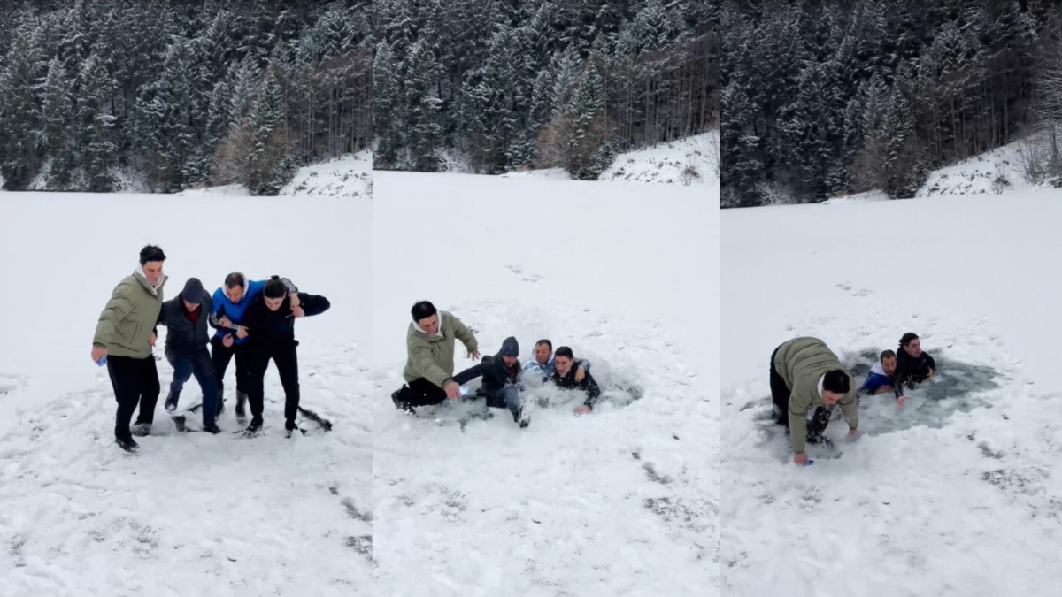 Türkei: Abenteuer auf zugefrorenem Fluss in Uzungöl endet mit ungewollter Badeeinlage