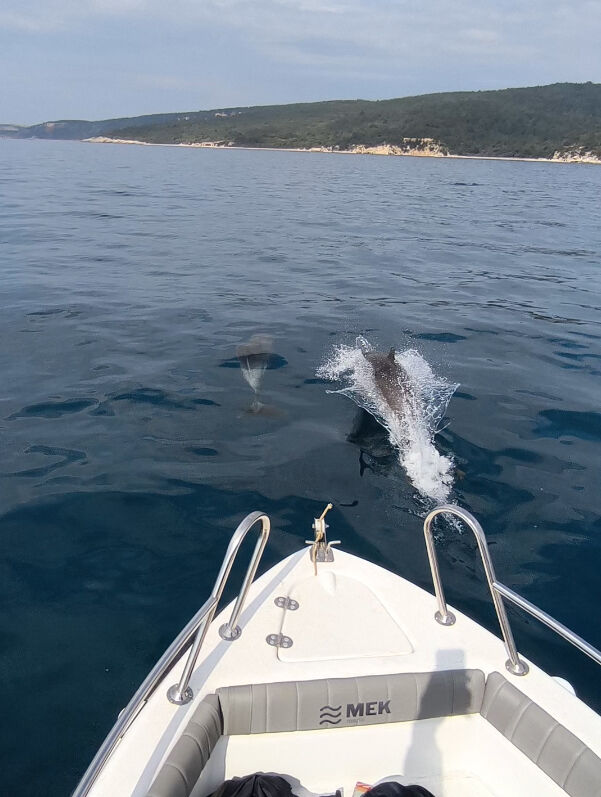 Süße Begegnung im Golf von Saros: Delfine begleiten Boot vor Gökçetepe