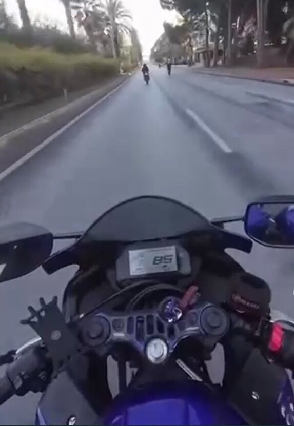 Einer der Fahrer lenkte sein Motorrad direkt auf die Polizisten zu und setzte seine Fahrt anschließend auf einem Rad fort. Die gefährliche Szene wurde von der Helmkamera eines weiteren Motorradfahrers aufgezeichnet.
