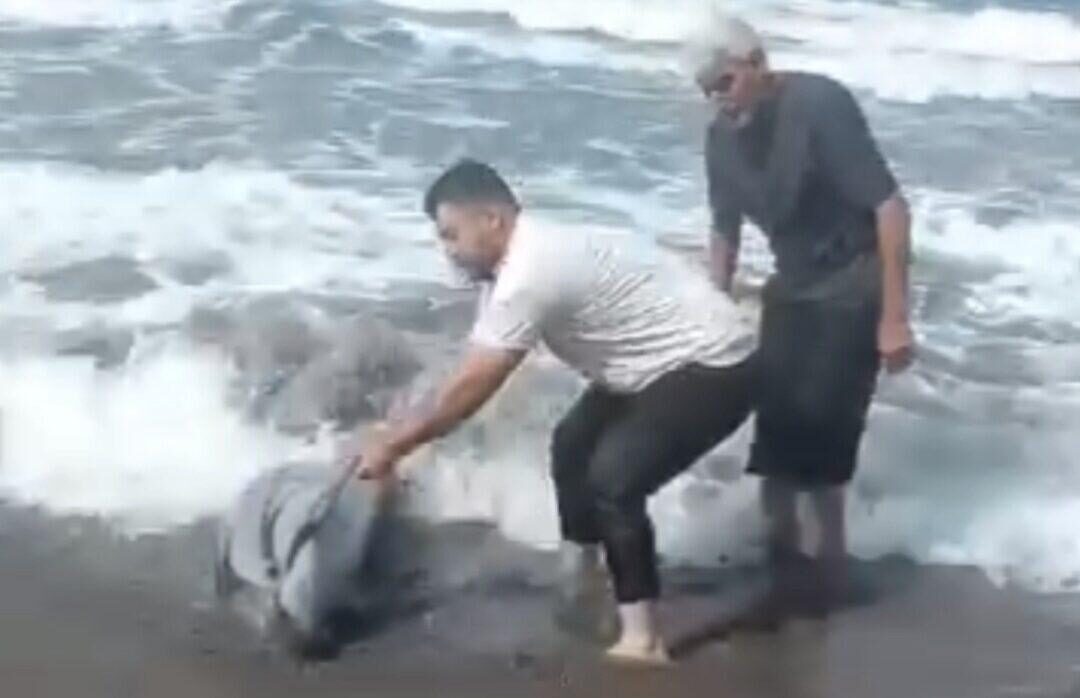 In der türkischen Küstenstadt Samandağ (Provinz Hatay) haben Anwohner einen gestrandeten Delfin gerettet. Das Tier war am Strand des Stadtteils Meydan Mahallesi angespült worden und versuchte vergeblich, sich selbstständig zurück ins Meer zu bewegen.
