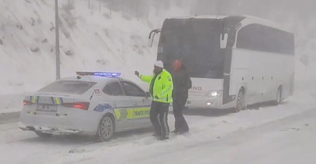 Auf der Erciyes-Straße in der Provinz Kayseri sind am Donnerstag 44 Personen in einem Reisebus eingeschlossen worden, nachdem ein starkes Schneetreiben das Weiterfahren unmöglich gemacht hatte. Die Polizei konnte die Fahrgäste rechtzeitig befreien.