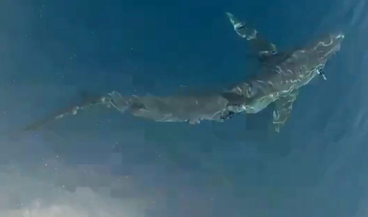 Fischer, die mit ihrem Boot auf das offene Meer hinausgefahren waren, entdeckten den Hai und filmten ihn mit einem Mobiltelefon. In dem Video, das in sozialen Medien rasch die Runde machte, ist zu sehen, wie der Hai ruhig durch das klare Wasser gleitet, bevor er wieder in den Tiefen des Meeres verschwindet.
