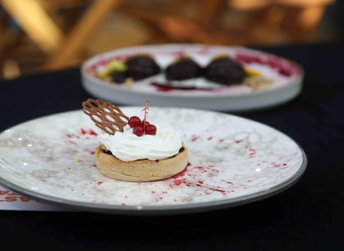 Diese Neuinterpretation bestand aus einem gefüllten, zusammengerollten und frittierten Güllaç-Blatt, verfeinert mit Ganache, Erdbeeren und anschließendem Sirup.