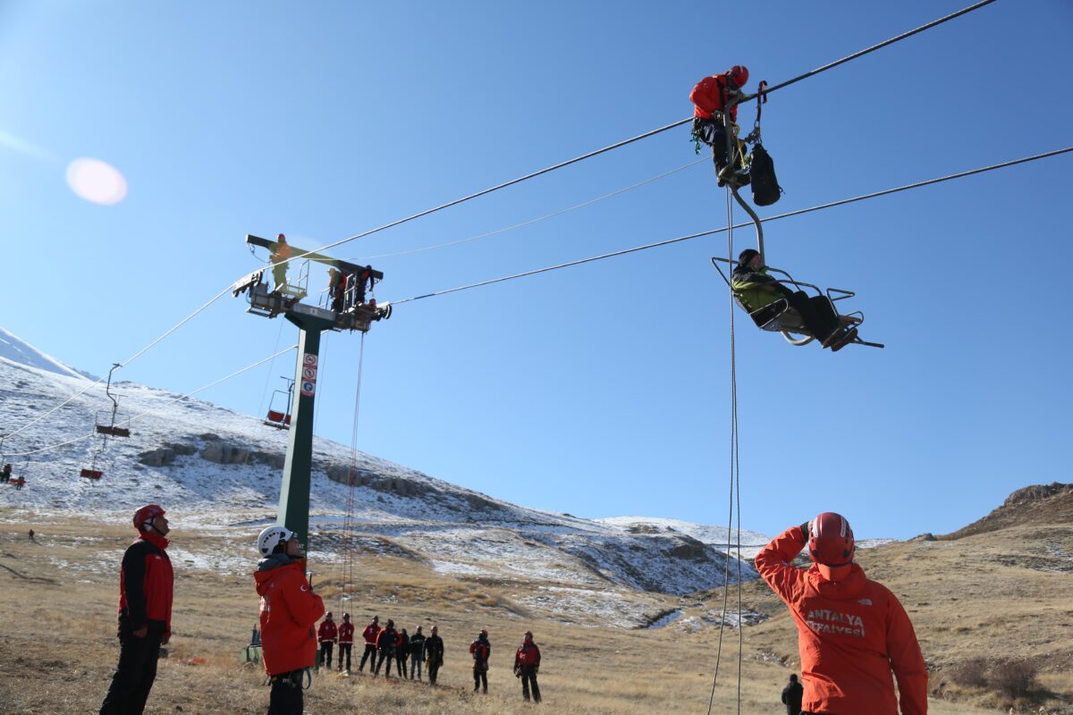 Am Saklıkent-Skizentrum im Bezirk Konyaaltı in Antalya haben die Jandarma-Arbeits- und Rettungsteams (JAK) unter Koordination des Kommandos eine Rettungsübung bei Sessellift-Notfällen erfolgreich durchgeführt.