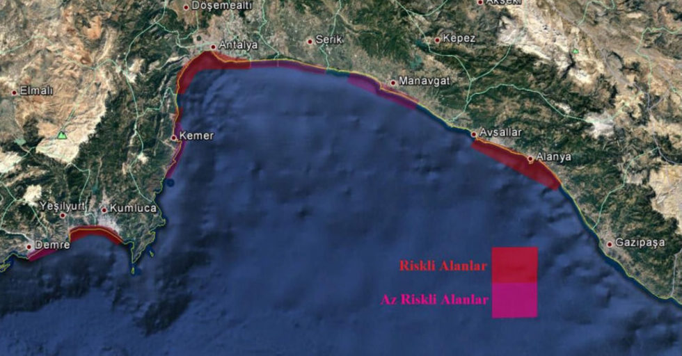 Als Risikogebiete mit erhöhter Müllbelastung gelten laut Plan die Strände der Stadt Antalya, Alanya, Finike und Kumluca (Finike-Bucht) sowie die Küsten von Beldibi und Göynük bei Kemer. Dagegen werden die Strände von Manavgat, Belek, Aksu, Demre und dem Zentrum von Kemer als weniger gefährdet eingestuft.