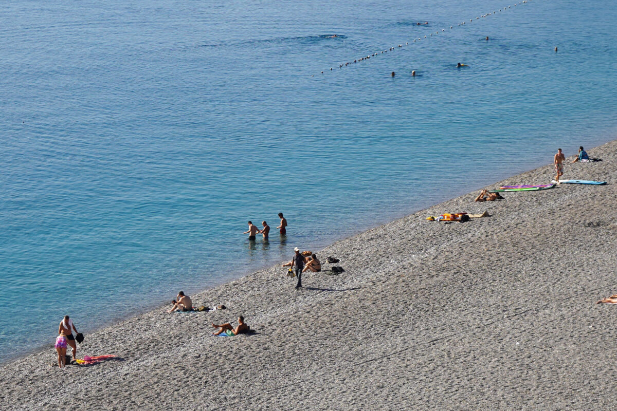 In Antalya zeigt sich in der ersten Novemberwoche noch einmal spätsommerliches Wetter. Mit 27 Grad Luft- und 24 Grad Wassertemperatur nutzen sowohl einheimische als auch ausländische Touristen die Sonne am Konyaaltı-Strand, schwimmen im warmen Mittelmeer und genießen die milden Temperaturen.