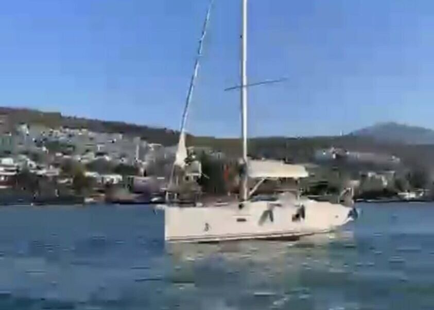 Zuvor hatte der türkische Wetterdienst für den Küstenabschnitt zwischen Bodrum und Kaş eine Sturmwarnung herausgegeben. Kurz darauf nahmen Wind und Wellengang deutlich zu. Das in der Bucht vor Anker liegende Segelboot wurde von den Wellen an Land gedrückt und saß fest.
