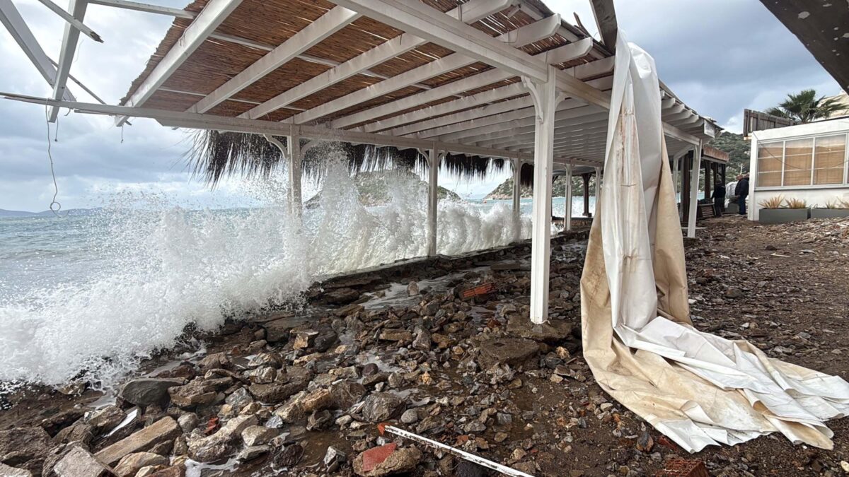 Seit den Nachtstunden tobte der Sturm besonders im Westen und Norden der Halbinsel. In Yalıkavak fiel ein rund zehn Meter langes Werbeschild dem starken Wind zum Opfer. An der Küste von Gümüşlük wurden Schaufenster und Holzkonstruktionen beschädigt, Dachplanen von Geschäften wurden weggerissen, Tische und Stühle auf die Straßen geweht. Sogar ein Symbolbaum, an dem im Sommer zahlreiche Touristen Fotos machen, stürzte um.