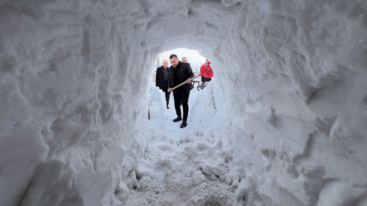„In diesem Jahr hat es in Yüksekova außergewöhnlich stark geschneit. Der von den Dächern herabfallende Schnee hat den Eingang meines Geschäfts komplett blockiert. Mit einer etwa zweistündigen Arbeit haben wir einen Tunnel gegraben. Jetzt können meine Kunden wieder bequem zu mir kommen“, sagte Aytekin.