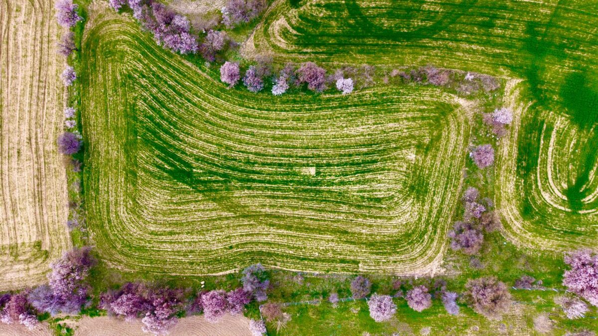 Die blühenden Äste verschmelzen mit den grünen Weizenfeldern und dem Blau des Keban-Stausees zu einer malerischen Kulisse, die sowohl Einheimische als auch Fotografie-Enthusiasten begeistert. Die Schönheit der Szenerie wurde auch aus der Luft mit einer Drohne festgehalten, wodurch die harmonische Kombination aus Naturfarben und Landschaft eindrucksvoll sichtbar wird.